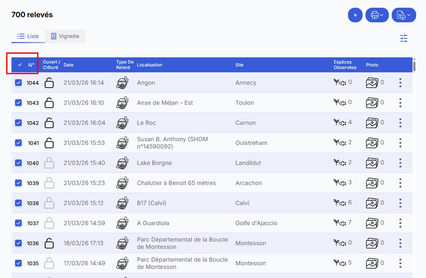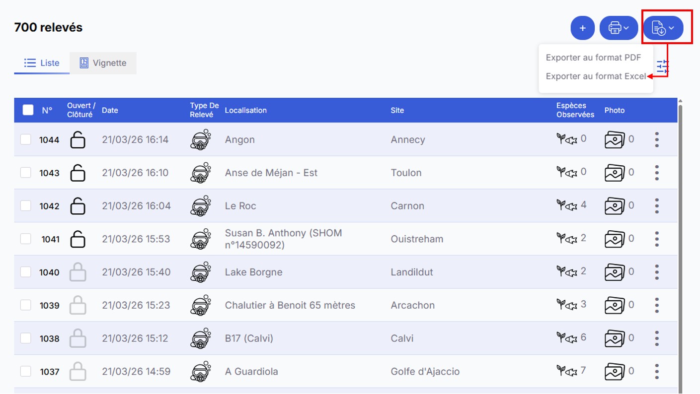 Retrouver simplement un (ou plusieurs) relevé(s), c’est très utile pour pouvoir le consulter, retrouver des photos, modifier le relevé mais aussi pour exporter les observations.