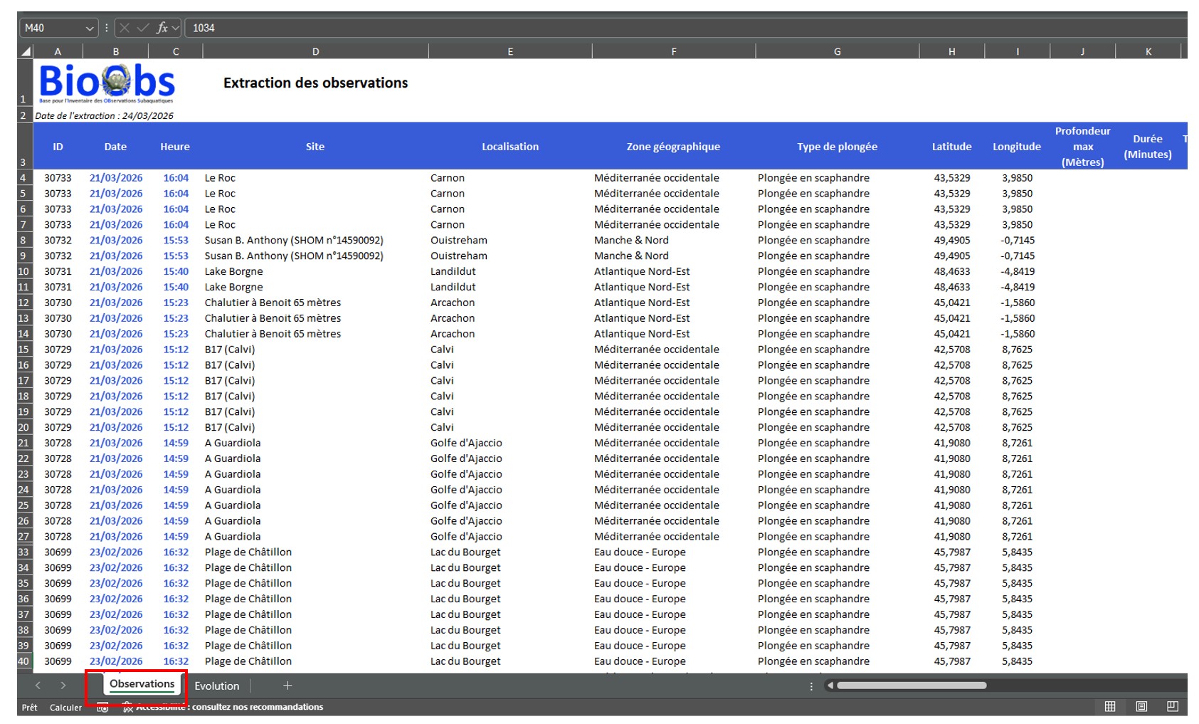 Exporter ses observations ?