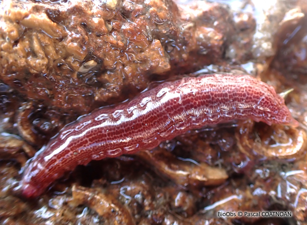 Couleur : brun à rouge avec des lignes longitudinales jaunes ou beige clair Corps : cylindrique formé de fins anneaux transversaux bien marqués car plus clairs. De longs cils dorsaux Tête : huit paires de cirres tentaculaires, une trompe exsertile, 2 antennes et 8 paires de cirres Yeux : au nombre de quatre Taille : maximum 6 cmBiotope / Habitat