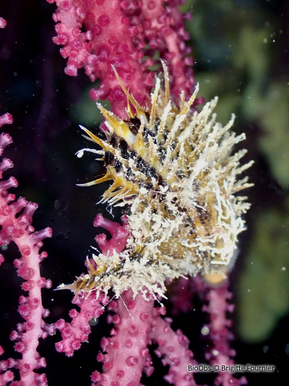 Fixée sur différents substrats, de 10 et 70 m de profondeur maximum environ 100 m, fixé surtout sur les gorgonesDistribution