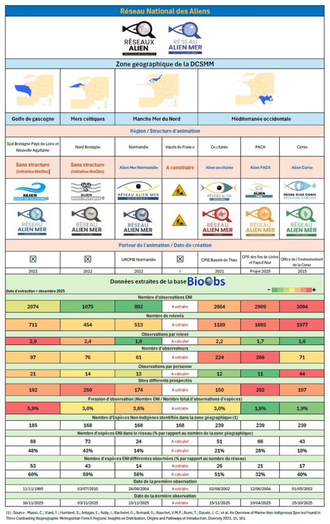 Zones géographiques de la DCSMM et réseaux ALIENS